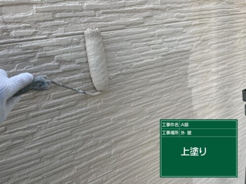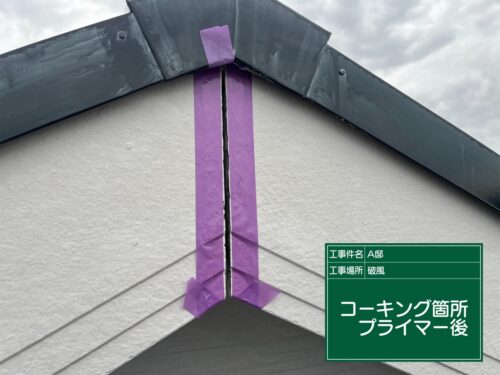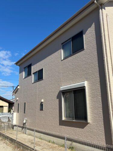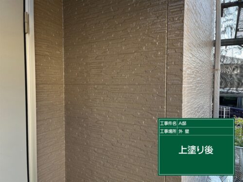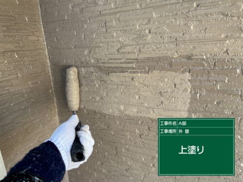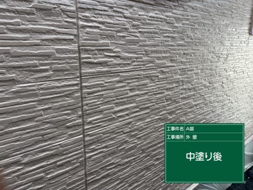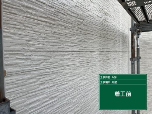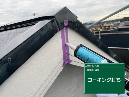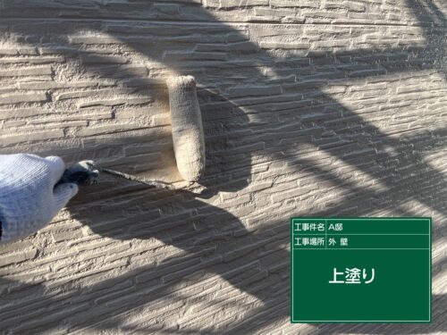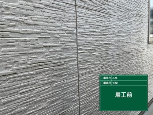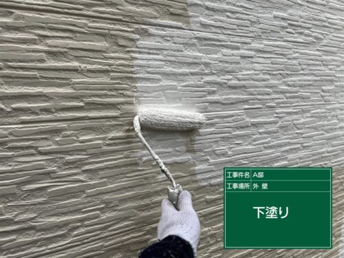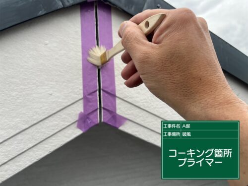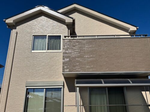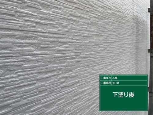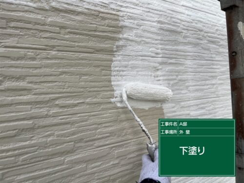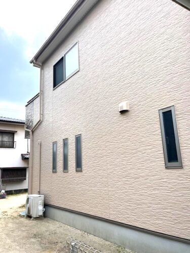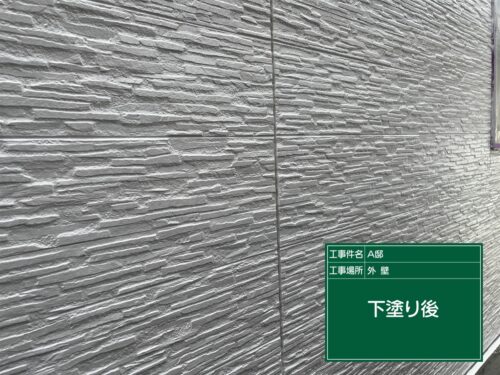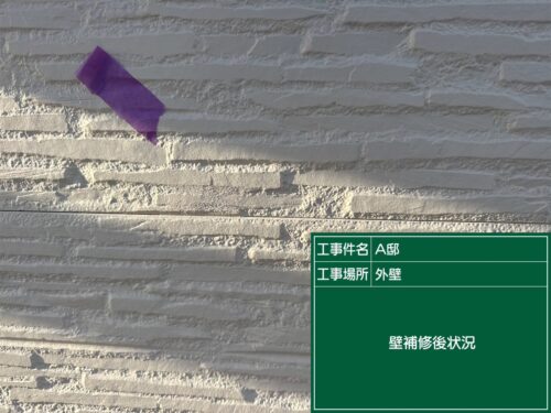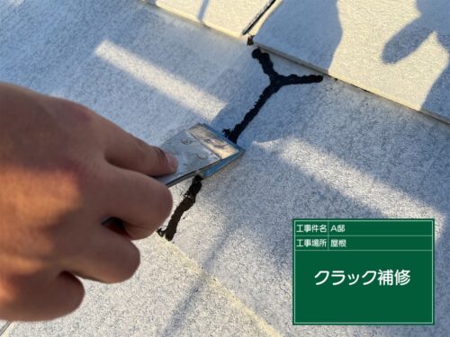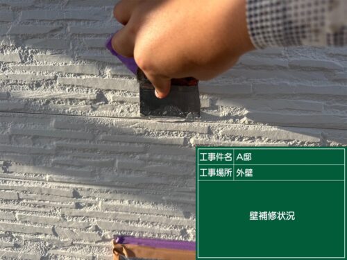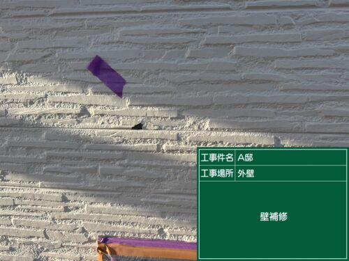 外壁下塗り前に外壁のクラック等職人が確認し丁寧に補修していきます。