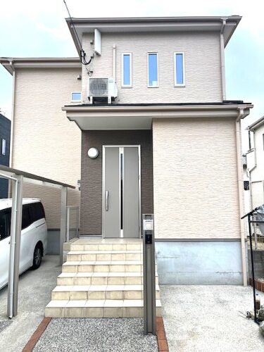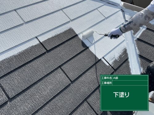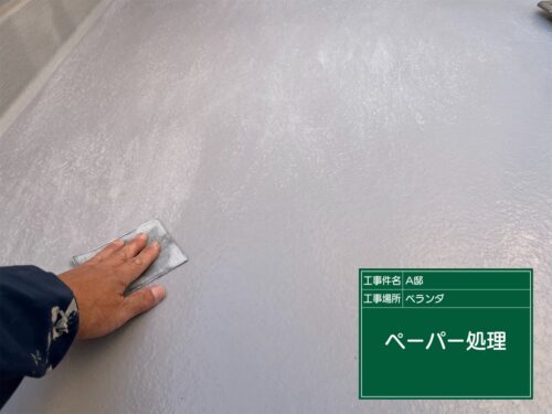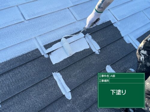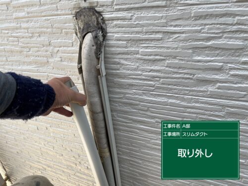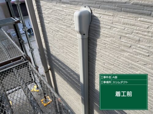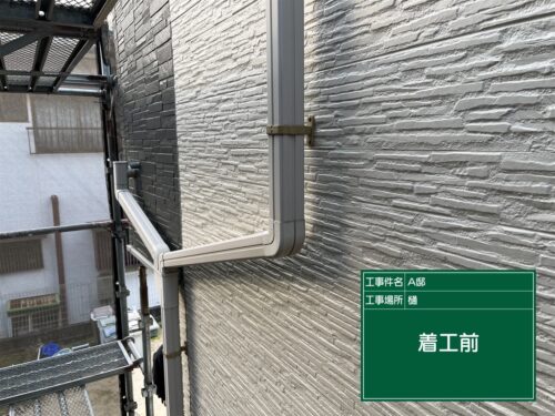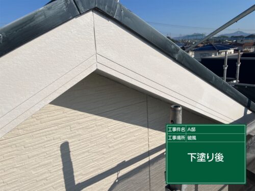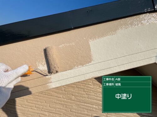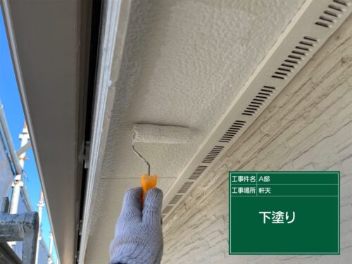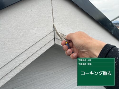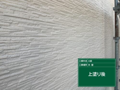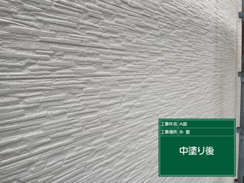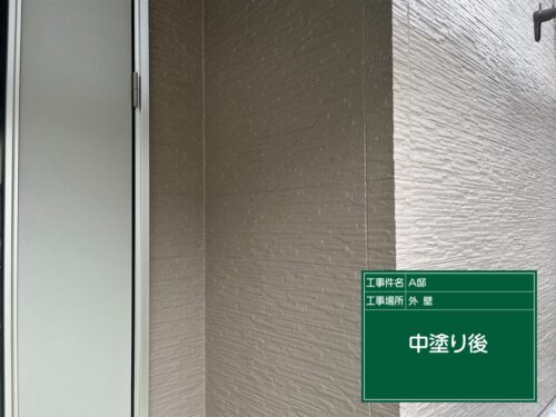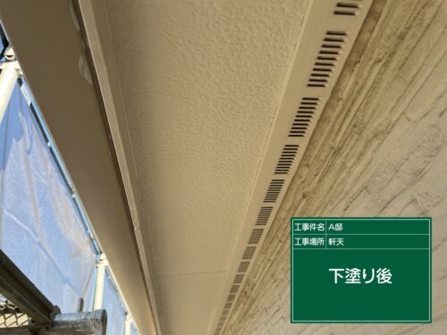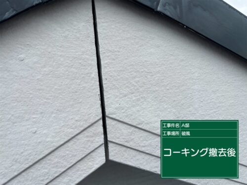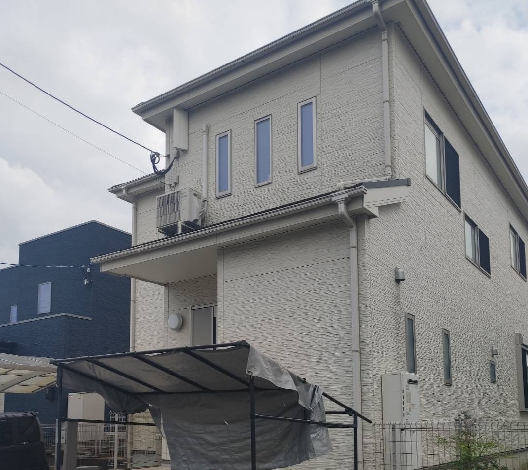 外壁下塗り前に外壁のクラック等職人が確認し丁寧に補修していきます。
