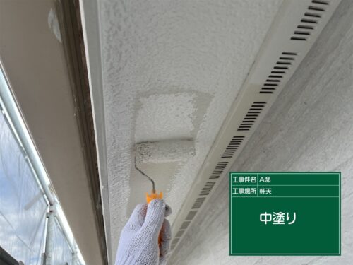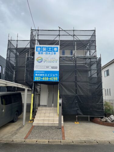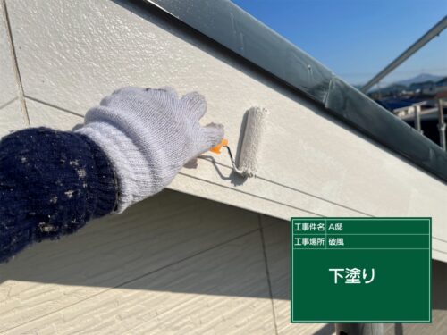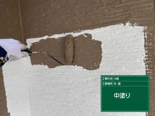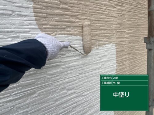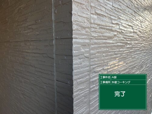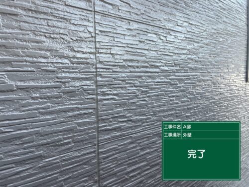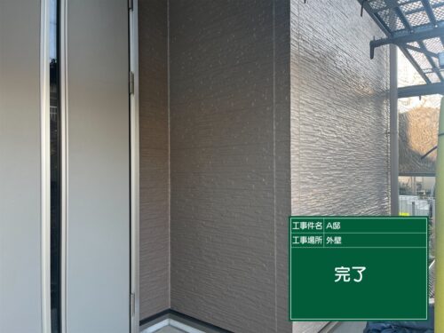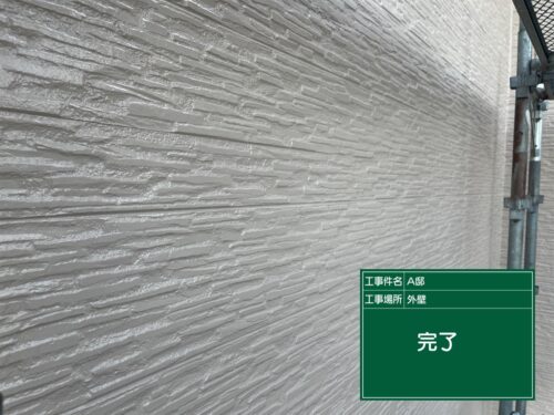 外壁下塗り前に外壁のクラック等職人が確認し丁寧に補修していきます。
